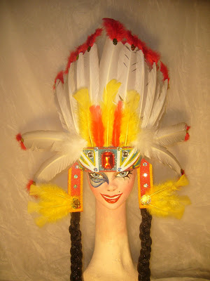 Vinchas de caciques de goma espuma con plumones y cintas y lentejuelas
