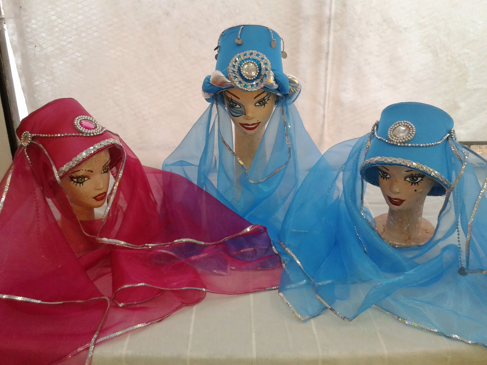 Casquetes forrados en tela con velo